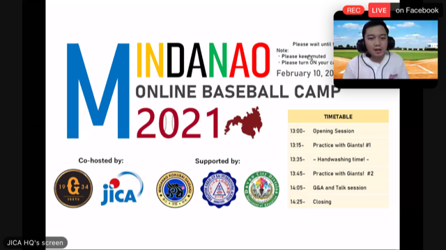 On February 10, Consul General Yoshiaki Miwa attended the Mindanao Online Baseball Camp 2021 hosted by the Japan International Cooperation Agency (JICA) in partnership with Yomiuri Giants, Japan’s most popular professional baseball team. The online baseball camp was organized to conduct trainings and exercises for the youth in Mindanao.